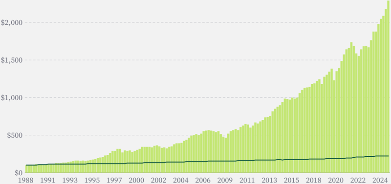 The chart illustrates the impact of this long-term investment thinking – a $100 investment in a balanced portfolio in 1989 has grown to $2,287 as at September 30, 2025.