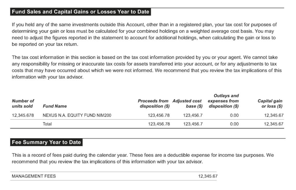 The T3 slips do not include any capital gains (or losses) that you may have incurred from withdrawals related to cashflow requirements or fees. These are reported under the Fund Sales and Capital Gains or Losses section.